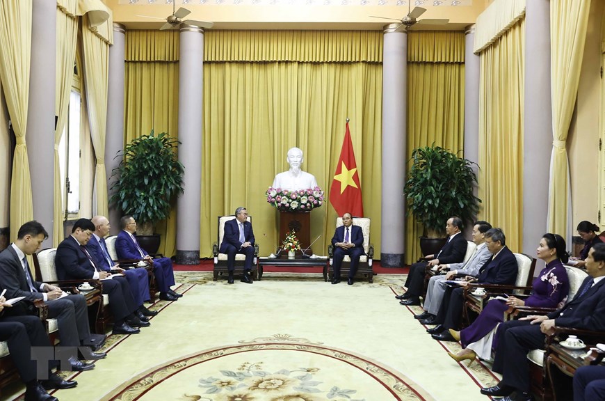 Президент страны выразил уверенность в том, что визит способствует укреплению и развитию дружеских отношений и традиционного сотрудничества между Вьетнамом и Казахстаном. Глава вьетнамского государства предложил сторонам развивать преимущества Соглашения о свободной торговле между Вьетнамом и Евразийским экономическим союзом, а также активизировать сотрудничество в потенциальных и сильных отраслях. Президент приветствовал открытие прямого рейса между двумя странами.