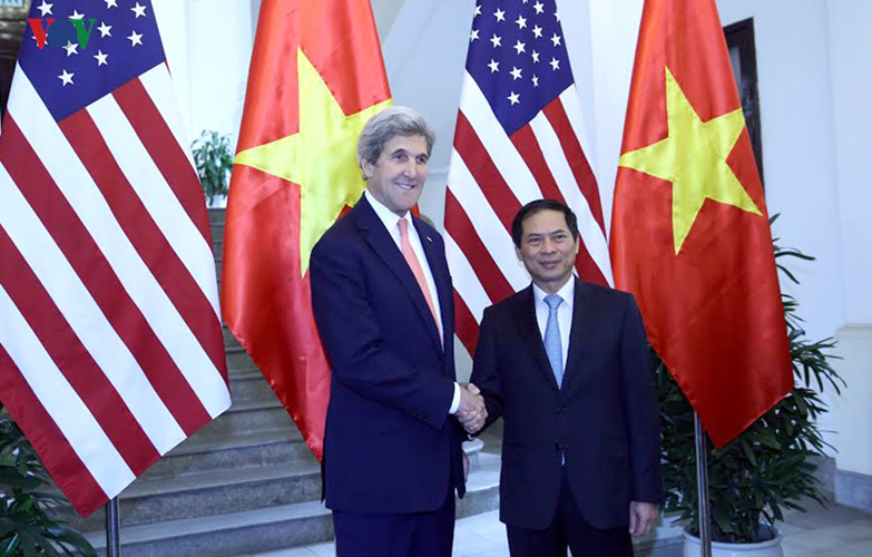 По поручению вице-премьера, министра иностранных дел Вьетнама Фам Бинь Миня, замглавы МИД Буй Тхань Шон провёл рабочую встречу с госсекретарём США Джоном Керри. Стороны обсудили меры по дальнейшему развитию отношений между двумя странами и выполнению договорённостей о сотрудничестве. Буй Тхань Шон призвал США в скором времени признать статус рыночной экономики Вьетнама, снять торговые барьеры для вьетнамских товаров, отдать приоритет сотрудничеству с Вьетнамом в ликвидации последствий войны, эффективно выполнить декларацию об общем видении на оборонное сотрудничество от 2015 года и памятный протокол об оборонном сотрудничестве от 2011 года. Что касается региональных и междунароных вопросов, то замминистра высоко оценил важность стратегического партнёрства между АСЕАН и США, подчеркнув, что Вьетнам готов координировать действия с США для повышения центральной роли АСЕАН в регионе. Касаясь вопроса Восточного моря, Буй Тхань Шон подчеркнул необходимость соблюдения международного права в целях сохранения мира, стабильности, безопасности и свободы морского и авиационного судоходства в регионе.