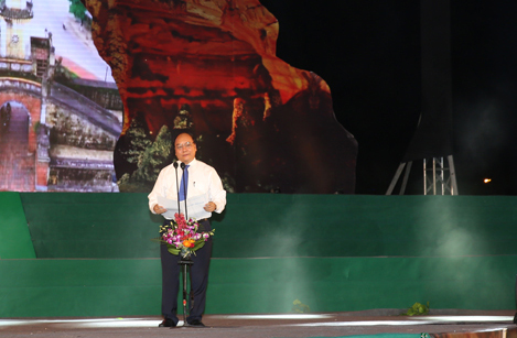 | Вице-премьер Вьетнама Нгуен Суан Фук выступает на церемонии открытия праздника пещер провинции Куангбинь 2015 года. Фото: VGP/ Le Son |