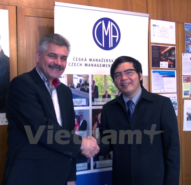 | Председатель Союза чешских менеджеров Иво Гайдос (слева) и зампредседателя, генеральный секретарь Ассоциации малых и средних предприятий Вьетнама То Хоай Нам. Фото: Vietnam+ |