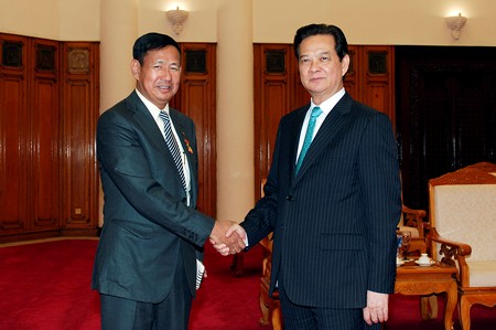 (VOVworld) – В ходе прошедшей 20 января во второй половине дня встречи с министром информации Мьянмы Йе Хтутом, премьер-министр СРВ Нгуен Тан Зунг выразил пожелание, чтобы Вьетнам и Мьянма активизировали отношения сотрудничества в сферах политики, дипломатии, экономики, торговли, инвестиций, туризма, а также в обеспечении мира и безопасности в регионе, вместе внесли вклад в строительство Сообщества АСЕАН в 2015 году, что будет способствовать углублению и развитию двусторонних отношений. Премьер-министр СРВ Нгуен Тан Зунг предложил мьянманскому Правительству в скором времени выдать вьетнамским предприятиям лицензии на расширение предоставления коммуникационных услуг и открытие филиала вьетнамского банка в Мьянме, а также активизировать взаимодействие в сфере информации и коммуникаций, что будет способствовать повышению взаимопонимания и форсированию взаимодействия между народами двух стран. Нгуен Тан Зунг также предложил сторонам в дальнейшем активизировать сотрудничество в 13 сферах, которые согласовали высокопоставленные руководители двух стран.