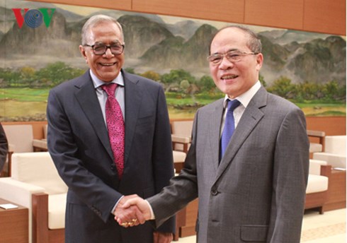 В тот же день председатель Национального собрания СРВ Нгуен Шинь Хунг принял президента Бангладеш Абдула Хамида. Он выразил уверенность в том, что визит бангладешского президента во Вьетнам поспособствует активизации традиционных отношений дружбы и сотрудничества между двумя странами. Спикер вьетнамского парламента выразил пожелание, чтобы обе стороны продолжили расширять всестороннее сотрудничество в разных областях, развивать эффективность существующих механизмов сотрудничества.