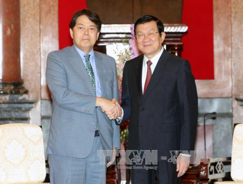 (VOVworld) - Во вторник президент СРВ Чыонг Тан Шанг принял находящегося в нашей стране с рабочим визитом министра сельского хозяйства, лесных угодий и рыбного промысла Японии Ёсимасу Хаяси. Глава вьетнамского государства высоко оценил нынешнюю поездку японской делегации, направленную на укрепление двусторонних отношений с Вьетнамом, особенно, в области сельского хозяйства. По его словам, успешное вьетнамо-японское сотрудничество в этой сфере позволит расширить взаимосвязи и в других областях. Он предложил в скорейшем времени подписать документ о сотрудничестве между Министерством сельского хозяйства и развития деревни Вьетнама и Министерством сельского хозяйства, лесных угодий и рыбного промысла Японии. Ёсимаса Хаяси сообщил, что в сентябре текущего года его страна начнёт экспорт яблок во Вьетнам. Кроме того, на данный момент обсуждается вопрос импорта вьетнамского манго.