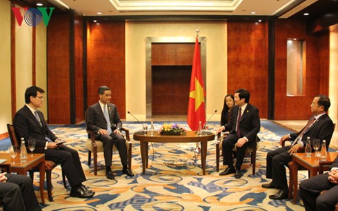 (VOVworld) - На полях проходящего на Филиппинах саммита АТЭС-2015, в среду президент СРВ Чыонг Тан Шанг провёл двусторонние встречи с президентом Перу, премьер-министром Малайзии и главой специального административного района Гонконг (Китай).