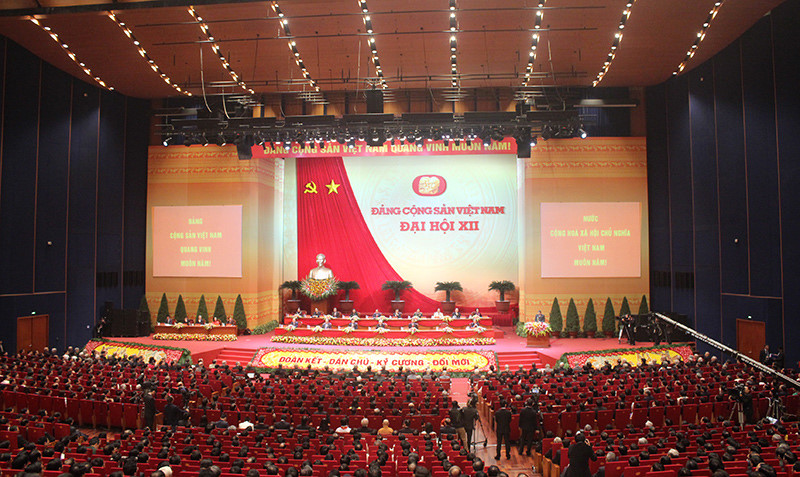 (VOVworld) – Утром 21 января в Национальном конференц-центре Мидинь в Ханое официально открылся 12-й съезд Коммунистической партии Вьетнама (КПВ), в котором принимают участие 1510 делегатов, представляющих более чем 4,5 миллиона членов партии всей страны. «Активизация строительства чистой и сильной партии, развитие всенародной мощи и социалистической демократии, всестороннее и комплексное форсирование дела обновления страны, надежная защита Отечества, сохранение мира и стабильности, стремление к превращению Вьетнама в современную исдустриальную страну» - таковы темы 12-го съезда КПВ.
