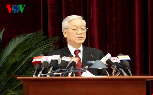 | Генсек ЦК КПВ Нгуен Фу Чонг выступает на открытии пленума. Фото: VOV/ Vu Duy |