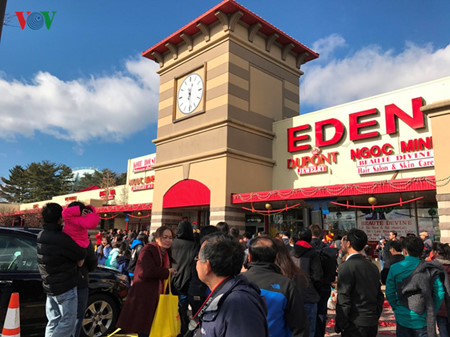 (VOVworld) – Как и все вьетнамские диаспоры в других регионах мира вьетнамцы в Вашингтоне проводят разнообразные меропрития в связи с наступлением нового года по лунному календарю. В Вашинтоне проживают примерно 60 тысяч вьетнамцев и вьетнамская община здесь занимает 4-е место по величине по сравнению с другими вьетнамскими общинами в США. В этом году в новогоднем празднике, проводимом в районе вьетнамского рынка «Эден» в Вашингтоне, принимают участие тысячи вьетнамцев. Люди также приходят в пагоду, чтобы пожелать благополучия в новом году.