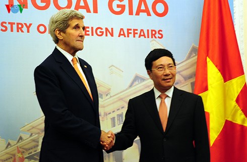 Относительно регионального и глобального сотрудничества, Фам Бинь Минь и Джон Керри обсудили меры по повышению роли региональных институтов для внесения вклада в обеспечение мира и стабильности в Восточном море. Вице-премьер, глава МИД Вьетнама Фам Бинь Минь подчеркнул: «Две страны делятся большими интересами в сохранении и активизации двустороннего сотрудничества в разных областях, а также в обеспечении мира, стабильности и процветания в Азиатско-Тихоокеанском регионе. Мы договорились активизировать сотруничество в вопросах региональной и международной экономической интеграции, в том числе в скорейшем завершении переговоров по Соглашению о Транс-Тихоокеанском партнёрстве (ТТП). Я уверен, что данный визит госсекретаря США Джона Керри посособствует дальнейшему развитию отношений между нашими странами в ближайшее время, и я готов продолжить взаимодействие с ним ради этих целей».