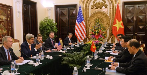 В свою очередь, госсекретарь США Джон Керри заявил, что достижение Соглашения о ТТП сделает прорывной шаг в двусторонних отношениях с того момента, когда в 2001 году было подписано Соглашение о двусторонней торговле. Глава американской дипломатии сказал: «США и Вьетнам сотрудничают для усиления безопасности во всём мире. США приветствуют участие Вьетнама в миротвореческой деятельности ООН. Это очень важно, потому что мир нуждается в этом. На самом деле США помогают Вьетнаму в подготовке к выполнению данной миссии и сотрудничают с Вьетнамом в предоставлении гуманитарной помощи и спасательной работе в случае, если произойдут катастрофы».