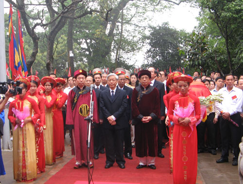 | Генеральный секретарь ЦК КПВ Нгуен Фу Чонг и вьетнамские эмигранты в Храме королей Хунгов |