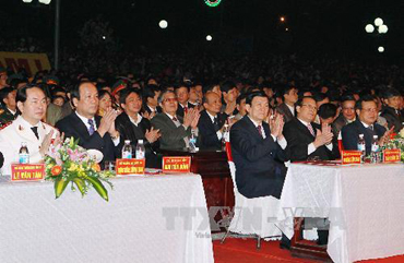 | Президент СРВ Чыонг Тан Шанг на церемонии, посвящённой 15-летию со дня реорганизации провинции Ханам. Фото: Chinhphu.vn |