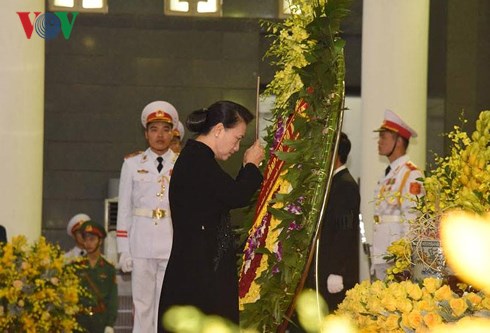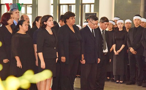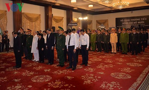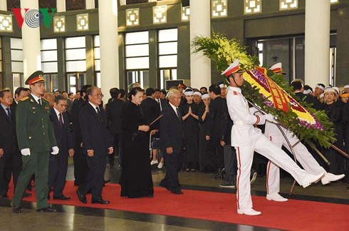 คณะผู้แทนของรัฐบาลเวียดนาม นำโดยนายกรัฐมนตรีเหงียนซวนฟุ๊ก คณะผู้แทนของสภาแห่งชาติ นำโดยประธานสภาแห่งชาติเหงียนถิกิมเงินและคณะผู้แทนของแนวร่วมปิตุภูมิเวียดนาม นำโดยนาย เจิ่นแทงเหมิน ประธานแนวร่วมปิตุภูมิเวียดนามได้เข้าเคารพศพอดีตเลขาธิการใหญ่พรรค โด๋เหมื่อย