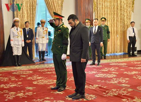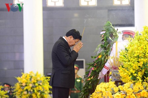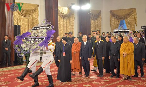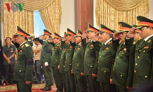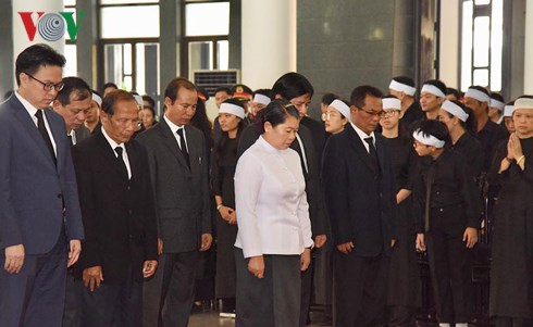 คณะผู้แทนสถานีวิทยุเวียดนามนำโดยนายหวูหาย รองประธานสถานีวิทยุเวียดนามเข้าเคารพศพท่านโด๋เหมื่อย |