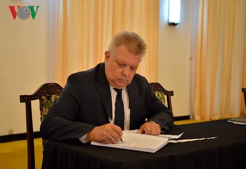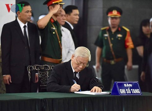 ในการลงนามในสมุดไว้อาลัย ท่าน เหงียนฟู้จ่อง เลขาธิการใหญ่พรรคฯได้แสดงความเสียใจต่อการจากไปของอดีตเลขาธิการใหญ่พรรคฯ โด๋เหมื่อย ซึ่งเป็นผู้นำที่ปรีชาสามารถและมีชื่อเสียงของพรรค รัฐและประชาชนเวียดนาม เป็นสมาชิกพรรคที่ซื่อสัตย์ อุทิศตลอดชีวิตให้แก่อุดมการณ์ความเป็นเอกราชของประชาชาติและลัทธิสังคมนิยม เพื่อความผาสุขของประชาชน เป็นผู้ที่มีส่วนร่วมยิ่งใหญ่ในภารกิจการต่อสู้เพื่อปลดปล่อยประชาชาติ รวมประเทศเป็นเอกภาพและในภารกิจการเปลี่ยนแปลงใหม่และสร้างสรรค์ประเทศ การถึงแก่อสัญกรรมของอดีเลขาธิการใหญ่พรรคฯ โด๋เหมื่อยคือความสูญเสียที่ยิ่งใหญ่ของพรรค รัฐและประชาชนเวียดนาม