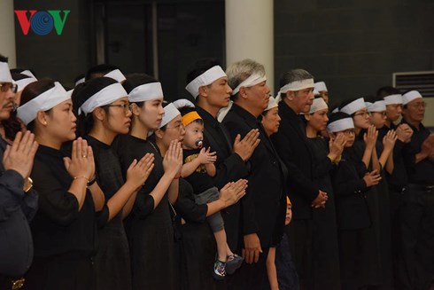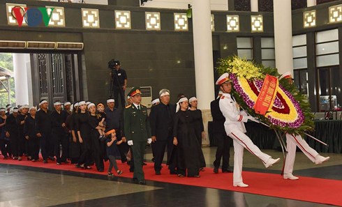 โดยครอบครัวของอดีตเลขาธิการใหญ่พรรคฯ โด๋เหมื่อย เป็นคณะแรกที่เข้าเคารพศพ ต่อจากนั้นคณะผู้แทนของคณะกรรมการกลางพรรคคอมมิวนิสต์เวียดนาม นำโดยท่าน เหงียนฟู้จ่อง เลขาธิการใหญ่พรรคฯ คณะผู้แทนของประธานประเทศเวียดนาม นำโดยรักษาการประธานประเทศ ดั๋งถิหงอกถิง