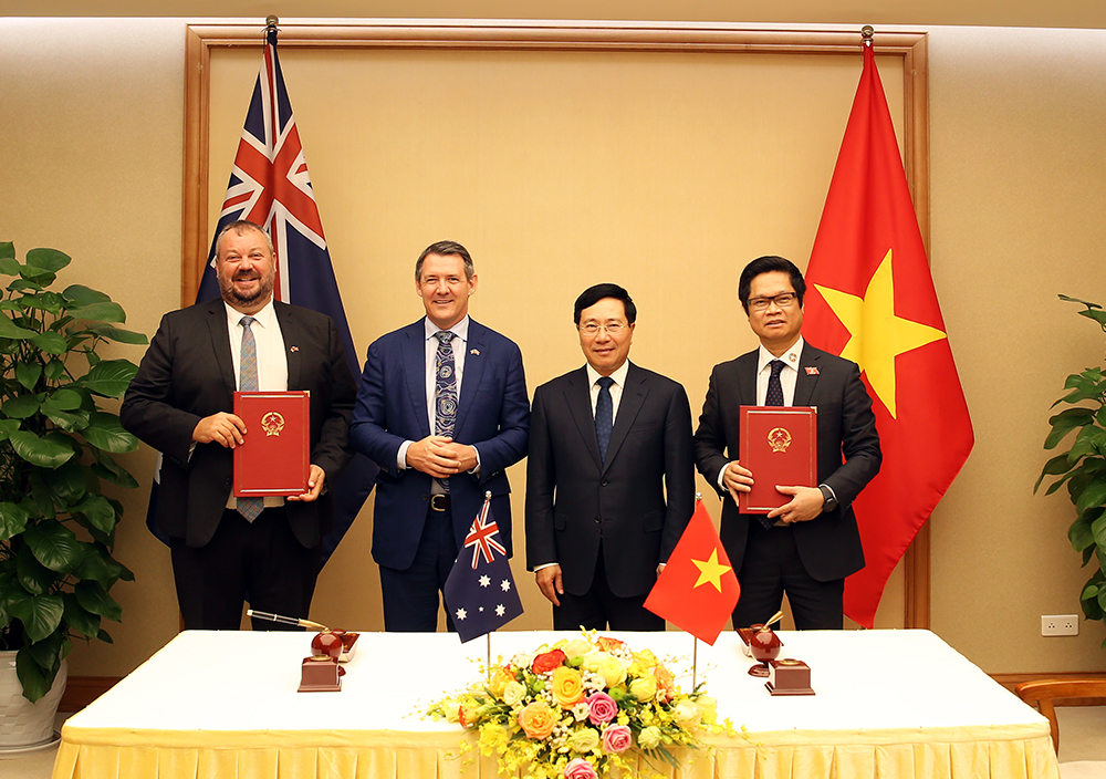 โอกาสนี้ นาย ฝ่ามบิ่งมิง รองนายกรัฐมนตรีและรัฐมนตรีว่าการกระทรวงการต่างประเทศและนาย Michael Gunner ผู้บริหารรัฐนอร์เทิร์นเทร์ริทอรีออสเตรเลียได้เป็นสักขีพยานในพิธีลงนามบันทึกช่วยจำเพื่อความเข้าใจเกี่ยวกับความร่วมมือระหว่างหอการค้าและอุตสาหกรรมเวียดนามกับหอการค้ารัฐนอร์เทิร์นเทร์ริทอรีออสเตรเลียเพื่อสร้างกรอบความร่วมมือระหว่างสถานประกอบการ 2 ฝ่าย.