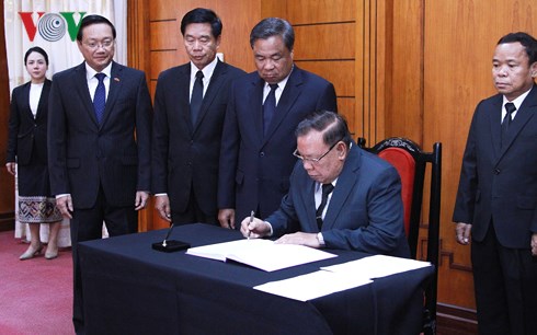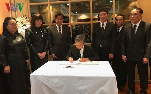 ประธานรัฐสภาลาว Panny Yathotu ได้นำคณะผู้แทนรัฐสภาลาวมาจุดธูปไว้อาลัย ณ สถานทูตเวียดนามที่กรุงเวียงจันทน์ |