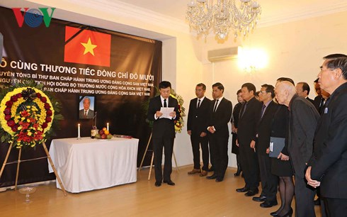 ในระหว่างวันที่ 5 ถึงวันที่ 7 ตุลาคม สถานทูตเวียดนามประจำประเทศต่างๆ เช่น สหพันธรัฐรัสเซีย ยูเครน ชิลี คิวบา อินโดนีเซีย เมียนมาร์ อินเดีย สาธารณรัฐเกาหลี ฝรั่งเศส อังกฤษ สวิสเซอร์แลนด์ แคนาดา อิสราเอล เป็นต้น รวมทั้งคณะผู้แทนถาวรเวียดนามประจำสหประชาชาติ องค์การระหว่างประเทศประจำในเจนีวาก็ได้เปิดให้ลงนามในสมุดไว้อาลัยอดีตเลขาธิการใหญ่พรรคคอมมิวนิสต์เวียดนาม โด๋เหมื่อย โดยมีคณะผู้แทนถาวรประเทศต่างๆประจำสหประชาชาติ องค์การระหว่างประเทศและเอกอัครราชทูตของหลายประเทศได้มาร่วมพิธีไว้อาลัยท่านโด๋เหมื่อย.