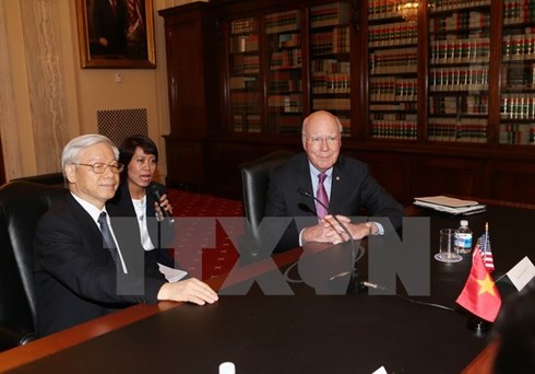![]() ท่านเหงียนฟู้จ่องกับส.ว. Patrick Leahy (Photo VNplus)