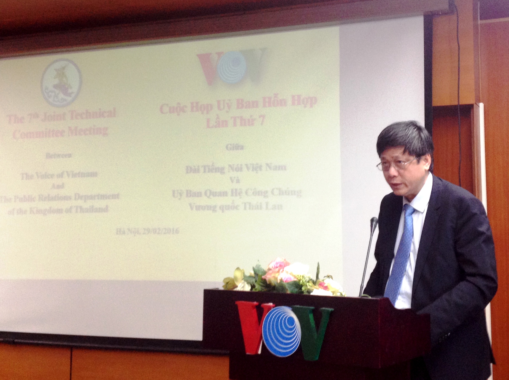 (VOVworld) – เมื่อบ่ายวันที่ 29 กุมภาพันธ์ ณ กรุงฮานอย ได้มีการจัดการประชุมคณะกรรมการเทคนิคร่วมระหว่างสถานีวิทยุเวียดนามกับกรมประชาสัมพันธ์ของไทยครั้งที่ 7 ในการกล่าวปราศรัยเปิดการประชุม นาย หวูหาย รองประธานสถานีวิทยุเวียดนามได้ย้ำว่า การเปิดตัวอย่างเป็นทางการของประชาคมอาเซียนหลังจากที่บรรดาผู้นำประเทศในเอเชียตะวันออกเฉียงใต้ได้ลงนามในแถลงการณ์ที่มีความหมายแห่งประวัติศาสตร์ของอาเซียนเมื่อปลายปี 2015 จะช่วยส่งเสริมความเข้าใจระหว่างประชาชนทั้งสองประเทศ อีกทั้งอำนวยความสะดวกให้แก่ความร่วมมือระหว่างเวียดนามกับไทยอย่างรอบด้าน รวมทั้งด้านสารสนเทศและการสื่อสาร การประชุมคณะกรรมการเทคนิคร่วมระหว่างสถานีวิทยุเวียดนามกับกรมประชาสัมพันธ์ของไทยครั้งนี้ได้มีการทบทวนผลความร่วมมือระหว่างสองหน่วยงานในช่วงหลายปีที่ผ่านมา อีกทั้งวางแนวทางเพื่อขยายความร่วมมือในช่วงเวลาต่อไป