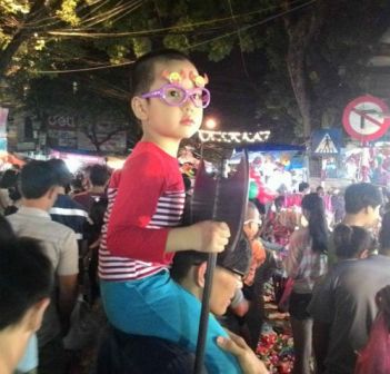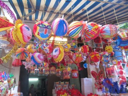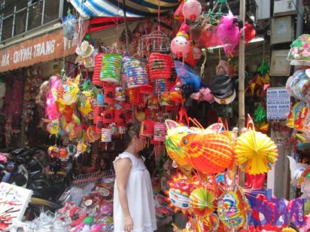 คุณทูเหวี่ยนกำลังเลือกโคมไฟรูปปลาตะเพียนไปพลางคุยกับพวกเราไปว่า ปัจจุบัน ของเด็กเล่นสมัยใหม่สวยและมีสีสันหลากหลายแต่ในหนึ่งปีมีเทศกาลสารทไว้พระจันทร์หนึ่งครั้ง เขาจึงเลือซื้อของเล่นที่มีเอกลักษณ์วัฒนธรรมพื้นบ้าน คุณเหวี่ยนกล่าวว่า “ ดิฉันซื้อโคมไฟรูปปลาตะเพียนและโคมไฟธรรมดาเพราะโคมไฟเป็นสัญลักษณ์ของเทศกาลสารทไหว้พระจันทร์และเด็กมักจะแห่โคมไฟในคืนวันพระจันทร์เต็มดวง ส่วนโคมไฟรูปปลาตะเพียนเป็นรูปลักษณ์พื้นบ้านด้วย ดิฉันหวังว่า ของเล่นพื้นบ้านเหล่านี้จะช่วยให้ลูกเข้าใจวัฒนธรรมเวียดนามว่า มีสิ่งดีเลิศที่ต้องส่งเสริมและอนุรักษ์ตราบนานเท่านาน ”