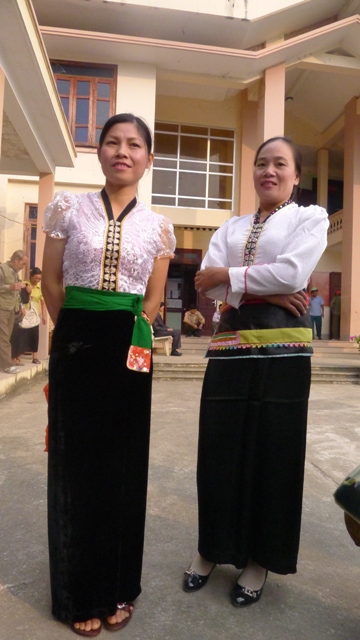 หากใครที่มีโอกาสขึ้นเหนือเที่ยวจังหวัดต่างๆเช่นเดียนเบียน เซินลา ก็จะต้องประทับใจกับภาพสาวชนเผ่าไทในชุดแต่งกายตามประเพณีที่เป็นเสื้อก๊อม กระโปงดำและผ้าเปียวโพกศีรษะ โดยสาวชนเผ่าไทได้รู้จักการผูกผ้า “ส่ายเอียว” ซึ่งคล้ายเข็มขัดเพื่อคาดเอวให้รัดตั้งแต่เด็กจากคุณแม่คุณยายเพื่อให้เมื่อโตเป็นสาวจะมีรูปร่างสวยงาม ดังนั้นสาวๆชนเผ่าไททุกคนมักจะมีรูปร่างที่งามสง่าและมีความอ่อนช้อยโดดเด่นในชุดประจำชนเผ่าที่เป็นเสน่ห์เป็นที่ประทับใจยิ่งนัก เสื้อก๊อมของชาวไทดำนั้นมีเป็นเสื้อที่มีส่วนคอตั้งสูง ส่วนของชาวไทขาวคอเป็นรูปหัวใจ กระดุมเสื้อมักจะทำจากเงินและออกแบบเป็นรูปผีเสื้อที่มีทั้งตัวผู้และตัวเมีย หากเป็นสาวที่ยังไม่มีครอบครัวกระดุมเป็นเลขคี่ ส่วนหญิงที่มีครอบครัวแล้วกระดุมเป็นเลขคู่ นางต่องทอเหวือง อยู่หมู่บ้านบ๋านด่าน อ.เหมื่องไล จ.เดียนเบียน เผยว่ากระดุมนั้นนอกจากใช้ประดับเพื่อความสวยงามแล้วยังมีความหมายด้านความเลื่อมไสด้วยโดยก่อนจะให้ลูกสาวไปแต่งงาน พ่อแม่จะต้องเตรียมชุดก๊อมพร้อมกระดุมที่ทำจากทองหรือเงินพร้อมเสื้อเสอลวงยาว1ชุดเพื่อใช้ในวันงานศพของตน
