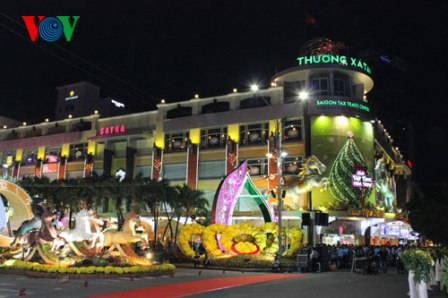 ( VOVworld )- งานถนนแห่งบุปผชาติในหัวข้อ “ นครโฮจิมินห์ที่รักของฉัน ” ได้เปิดขึ้นแล้ว ณ ถนนเหงวียนเหว นครโฮจิมินห์เมื่อค่ำวันที่ ๒๘ มกราคมที่ผ่านมา โดยมีท่านเจืองเติ้นซางประธานประเทศพร้อมผู้บริหารกระทรวงและหน่วยงานส่วนกลางและนครโฮจิมินห์เข้าร่วม งานถนนแห่งบุปผชาติเน้นในเนื้อหาใหญ่ ๓ ประการเช่น การผสมผสานเพื่อการพัฒนาและความปรารถนาอันแรงกล้า ทั้งนี้แสดงให้เห็นถึงนครโฮจิมินห์ที่คล่องตัว มีความคิดสร้างสรรค์และทันสมัย ไฮไลท์ของงานคือ ภาพเกี่ยวกับเวลา โดยมีม้า ๕ ตัวลากรถนาฬิกาดอกไม้กำลังวิ่งไปข้างหน้า อันเป็นการส่งสัญญาณว่า นครโฮจิมินห์จะพยายามต่อไปเพื่อความสำเร็จในเวลาข้างหน้า นอกจากภาพสะท้อนความทันสมัยของนครโฮจิมินห์แล้ว ที่ถนนแห่งบุปผชาติเหงวียนเหวยังคงอนุรักษ์ภาพลักษณ์ดั้งเดิมของชนบทเวียดนามเช่น ทุ่งนาเขียวขจี สระบัวและต้นฟักทองกับฟักเขียว ทำให้ผู้เข้าชมได้สัมผัสกับบรรยากาศในชนบทกลางตัวเมือง