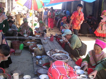 หลังวันหยุดยาวเทศกาลตรุษเต็ตเวียดนาม ชาวบ้านได้หลั่งไหลมาที่นี่เพื่อซื้อเครื่องใช้สอยต่างๆและเครื่องมือทำการเกษตรเช่น อ่างน้ำ ถังน้ำ คันไถ จอบและพลั่ว นายหว่างวันโหล่ ชนเผ่าไต ที่อาศัย ที่นาโฮ้ยกำลังต่อรองราคาคันไถ “ คันไถนี้ราคา ๓ แสนด่ง แพงมากแต่ผมชอบ ถ้าไม่ชอบผมจะไม่ซื้อ ซื้อคันไถใหม่จะทำนาได้ผลดี ”