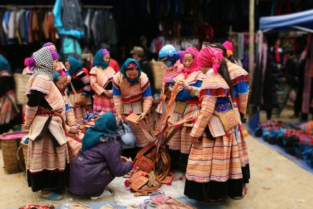 ชาวบ้านพากันมาตลาดนัดบั๊กห่าตั้งแต่เช้ามืด เสียงเรียกหากันและเสียงพูดคุยกันของพวกเขาทำให้บรรยากาศในตลาดพลุกพล่าน เมื่อดวงอาทิตย์ขึ้น ตลาดจะกลายเป็นสวนดอกไม้หลากสีเพราะกระโปรงของสาวชนเผ่าม้งที่มีสีฉูดฉาด ตลาดนัดบั๊กห่ายังเป็นที่นัดพบของหนุ่มสาวชนเผ่า ดังนั้นพวกเขาถือการมาตลาดเสมือนการเข้าร่วมเทศกาลของชนเผ่าก็ว่าได้ ด้วยเหตุนี้ พวกเขามักจะเลือกสวมชุดสีฉูดฉาดและสวยเพื่อให้ตนเองดูโดดเด่นในงาน