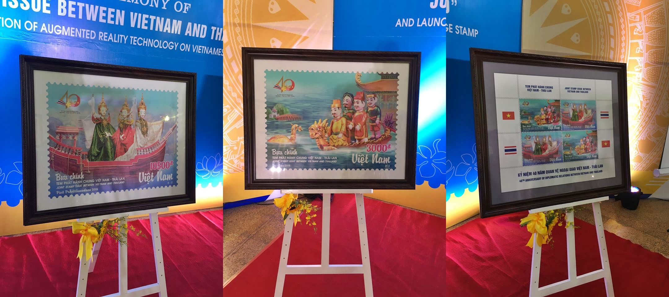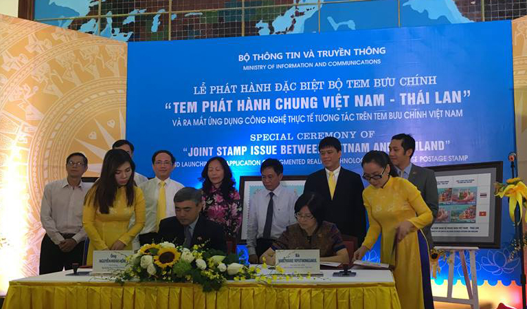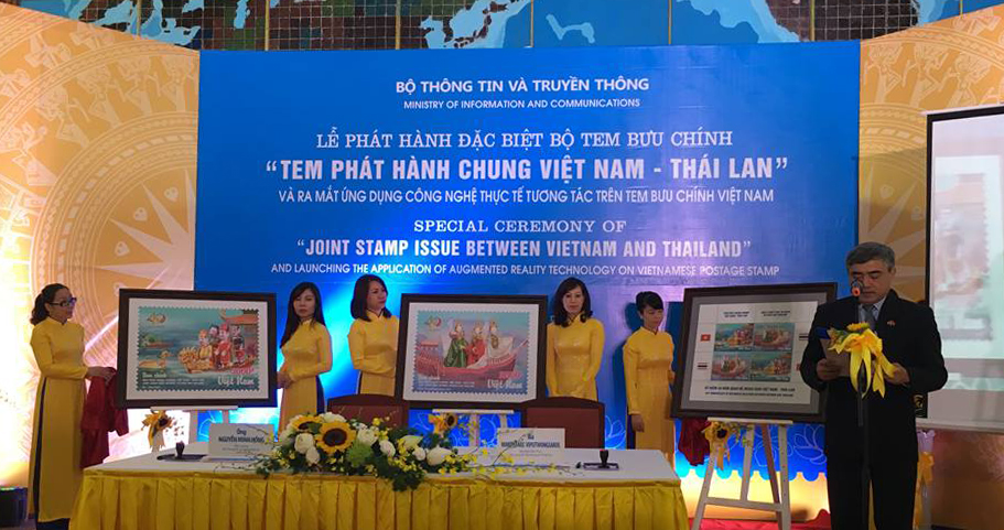 (VOVworld) – เนื่องในโอกาสฉลองครบรอบ 40 ปีการสถาปนาความสัมพันธ์ทางการทูตระหว่างเวียดนามกับไทย ซึ่งตรงกับวันที่ 6 สิงหาคม เมื่อเช้าวันที่ 5 สิงหาคม กระทรวงสื่อสารและประชาสัมพันธ์ได้ประสานกับกลุ่มบริษัทไปรษณีย์จัดพิธีเปิดตัวดวงตราไปรษณียากรเวียดนาม-ไทย ณ กรุงฮานอย ประเทศเวียดนามและกรุงเทพฯ ประเทศไทย โดยจัดแสดงสแตมป์ 2 ชุดภายใต้หัวข้อ “หุ้นกระบอก” ซึ่งเป็นศิลปะพื้นเมืองของไทยและเวียดนาม