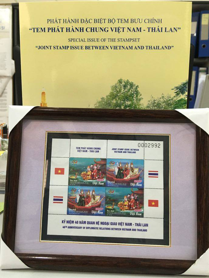 ตราไปรษณียากรที่ระลึกเพื่อเฉลิมฉลองครบรอบ ๔๐ ปีการสถาปนาความสัมพันธ์ทางการทูตไทย – เวียดนาม ได้จัดทำขึ้นโดยความร่วมมือระหว่างบริษัทไปรษณีย์ไทยและบริษัท Vietnam Post ...