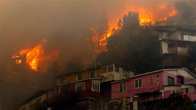 | Vụ hỏa hoạn lớn xảy ra ở thành phố ven biển Valparaíso của Chile đã thiêu rụi khoảng 150 ngôi nhà tại đâyẢnh: Press TV |
