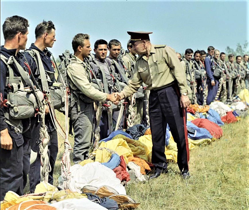 | Đại tướng Margelov (giữa) cùng lính dù trong một lần diễn tập; Nguồn: ria.ru |