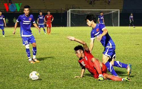 Qua 4 trận giao hữu trong nước, đội tuyển Olympic Việt Nam vẫn đang bất bại. (Ảnh: Hà Khánh)Trước khi lên đường, “bão chấn thương” càn quét đã khiến Olympic Việt Nam mất đi nhiều trụ cột như: Xuân Trường, Hồng Duy, Thanh Hiền, Tuấn Tài... Do đó, HLV Miura buộc phải bổ sung gấp 3 cầu thủ và hành quân với một đội hình chắp vá. Trong những ngày này, đoàn quân áo đỏ đang gấp rút rèn luyện những bài đánh kỹ chiến thuật để hoàn thiện lối chơi.
