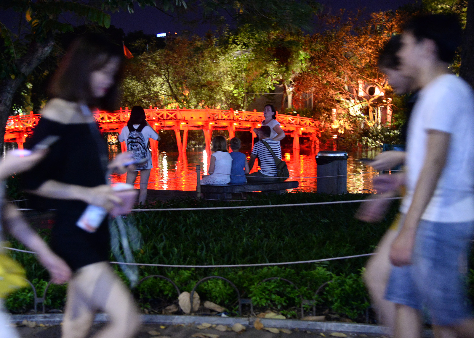 | Cả gia đình đi dạo mát ở hồ Gươm. |