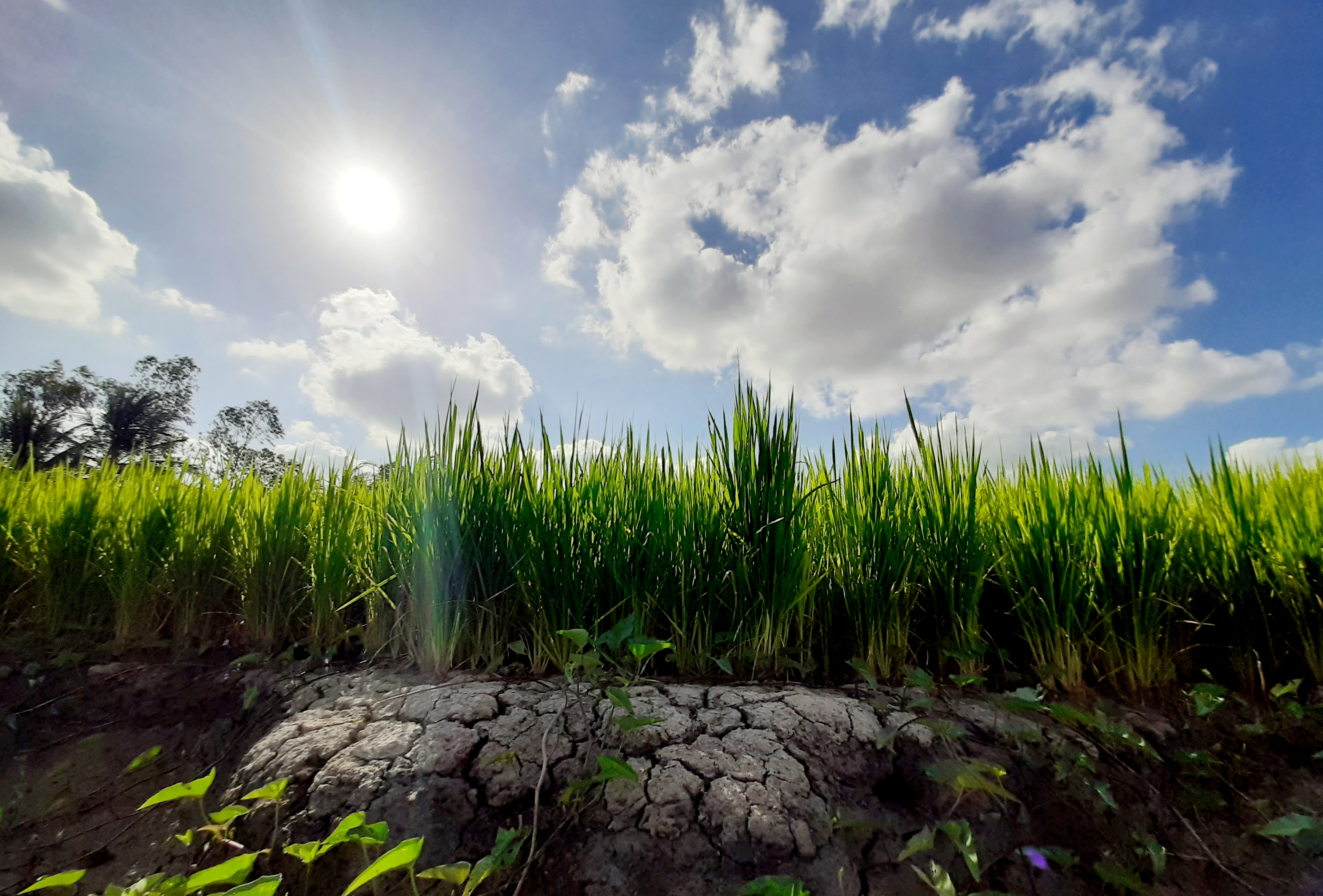 "Tình hình hạn hán xâm nhập mặn năm nay rất khốc liệt, từ tương đương đến hơn hạn mặn năm 2015 – 2016. Riêng xã Lình Huỳnh đã có biểu hiện của hạn mặn từ sau mùng 3 tết âm lịch, biểu hiện lúa đỏ lá, khô thân, lúa bị lép. Tới ngày hôm nay tốc độ quy mô diện tích, mức độ thiệt hại tăng lên khá nhanh", ông Hoàng chia sẻ.