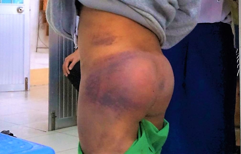Các dấu vết bị đánh trên cơ thể của 4 em học sinh thể hiện rõ trên mặt, mông và lưng, với nhiều vết bầm tím. Nguyên nhân các em bị đánh là do nghịch nước nói không nghe nên bị Mận, Xuyên và ông Hưng đánh bằng tay và cây.