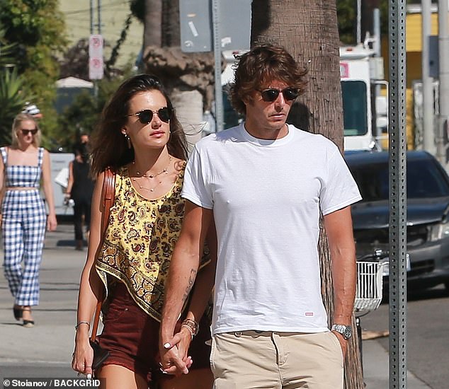 | Alessandra Ambrosio và bạn trai Nicolo Oddi tay trong tay hạnh phúc đi mua sắm ở California vừa qua. |