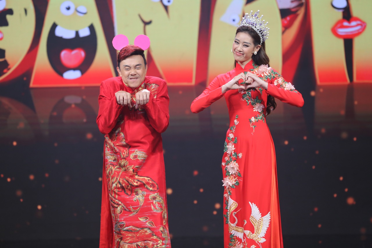 Đáp lại tấm lòng của hoa hậu, Chí Tài trả lời rằng: “Có một món quà quý giá nhưng không mất tiền mua, đó chính là tiếng cười”. Phần dẫn dắt duyên dáng và ngọt ngào của hai MC, cùng trang phục áo dài đỏ đậm sắc Xuân khiến khán giả cảm thấy ấm lòng trước thềm năm mới.