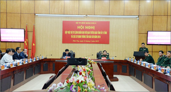 Sáng 14/3, tại tỉnh Phú Thọ, Bộ Tư lệnh Quân khu 2 tổ chức Hội nghị gặp mặt Ban Tuyên giáo tỉnh ủy 9 tỉnh và các cơ quan thông tấn báo chí năm 2019.