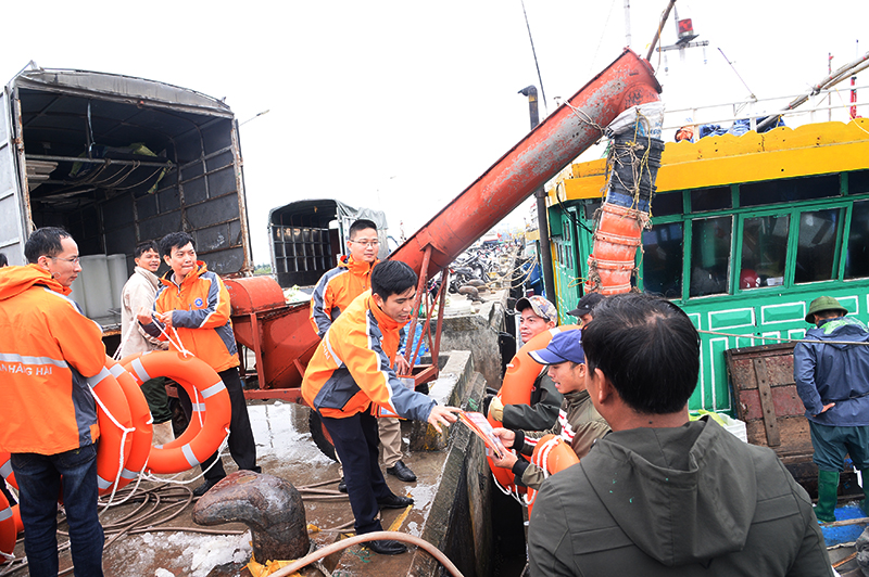 | Trung tâm Phối hợp Tìm kiếm Cứu nạn hàng hải Việt Nam phát phao tròn cho ngư dân Nam Định. |