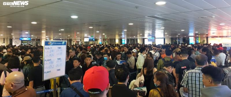 Trong sân bay, hành khách đứng đông nghịt không một chỗ trống, đặc biệt là chỗ làm thủ tục vé, phòng chờ. |