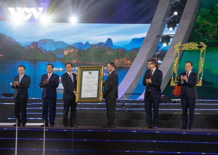 联合国教科文组织代表向广宁省和海防市颁发证书,承认下龙湾-吉婆群岛是越南第一处跨省世界自然遗产。 |