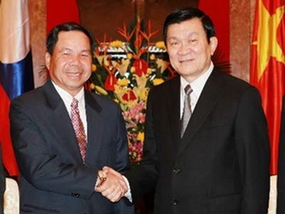 (VOVworld)- 越南国会副主席丛氏放23日在国会总部会见由国会经济、计划和财政委员会主席苏万萍·布帕努冯率领的老挝国会代表团。代表团此行旨在就即将在老挝举行的第7届亚欧议会伙伴会议,以及入世谈判与越方交流经验。老方希望在活动内容、礼宾和举办方式方面得到越方的帮助。丛氏放表示,越方将尽一切努力协助老方举办各项外交活动。