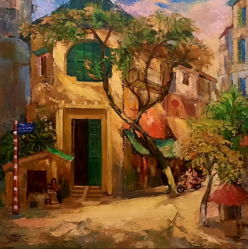 以丝绸、油漆、磨漆为主材料,通过生动的构图和精巧的艺术手法,艺术家们描绘了美丽迷人的河内秋天的景色和空间:从秋日的熟悉街角、落满黄叶的路、夏末的荷花、湖边深秋的早晨、到古屋棕色砖瓦屋顶上折射的金秋阳光等。