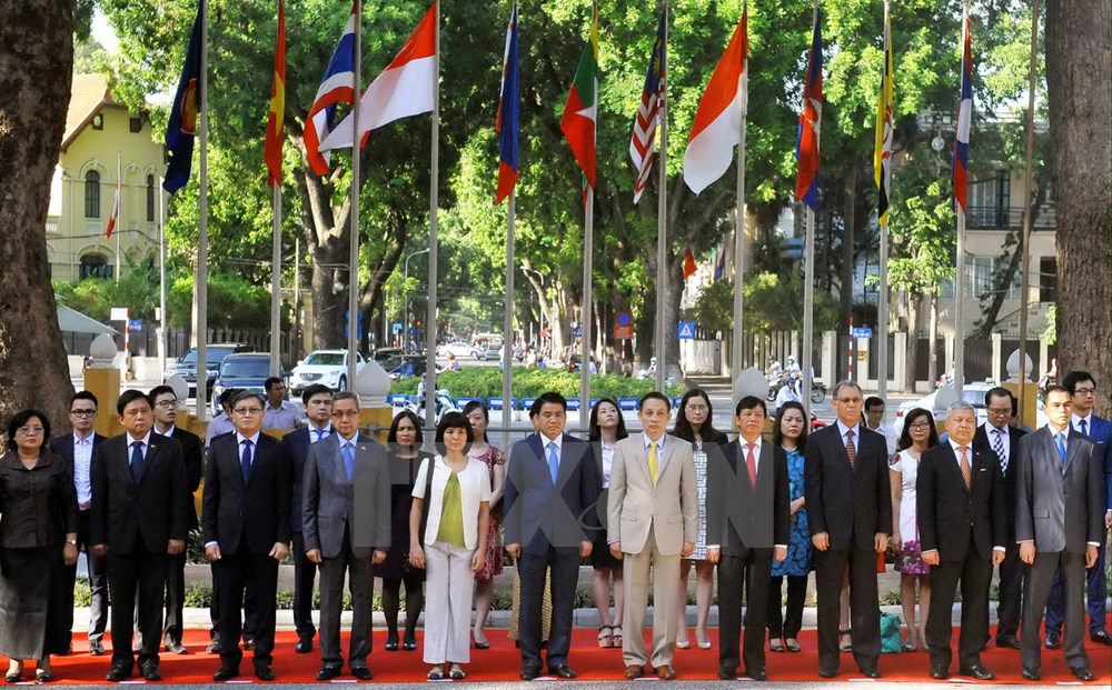 东盟北京委员会当天上午举行东盟旗升旗仪式,庆祝东盟成立五十周年。越南驻华大使邓明魁与东盟其他国家驻华大使共同出席仪式。中国外交部部长助理孔铉佑在仪式上宣读中国国家主席习近平就东盟成立五十周年发来的贺信,信中表示,希望东盟-中国关系将成为国际关系中的典范。(完)