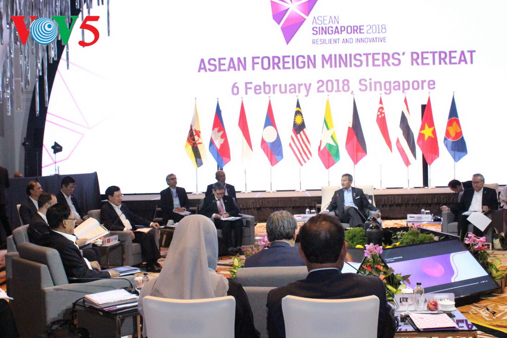会上,阮国勇重申了越南主动、积极和负责任地参与东盟共同体建设的承诺。越方欢迎并高度评价新加坡作为东盟轮值主席所表现出的责任精神和活动效率。他并强调,东盟继续保持在国际和地区问题上的团结一致是为和平与稳定作出的贡献,也是东盟在本地区中心地位的表现。