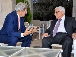 美国国务卿克里和巴勒斯坦总统阿巴斯。图片来源:越通社