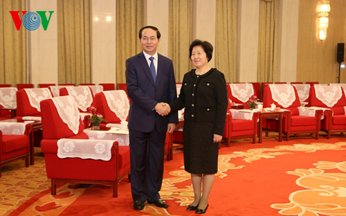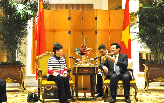 越南国家主席张晋创在主席府会见俞正声一行时表示,中国代表团这次访越是在两国即将迎来建交65周年的背景下进行的,是越中全面战略合作伙伴关系的生动体现。他并对中国成功承办APEC领导人会议表示祝贺。