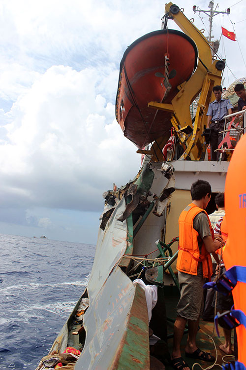 | 越南船只被中国船撞坏 |